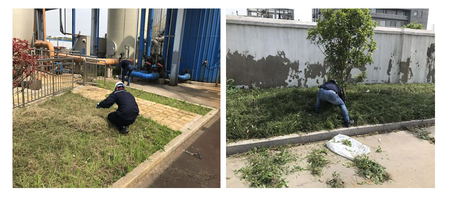 為迎合公司創新理念,節能降耗,泰興分公司將廠區內的綠化面積合理分配到個人,組織員工除去自己包干區域內的雜草,并納入績效考核。泰興分公司為員工配備了除草機、鏟子、樹枝剪等。員工看到自己包干區域內的雜草長到需要修剪的程度便自發在工作閑余時間修理,此舉不僅為公司節約綠化清理成本還極大地增強了員工的主觀能動性和責任意識。
